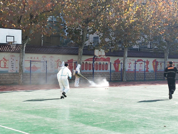 网传视频显示,近期,多地学校都有身穿防护服的“大白”重新现身,在校园内展开消杀工作。