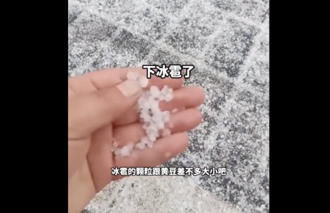 当地传出的视频显示,居民从地上抓起一把黄豆大小的冰雹,并说:“这是冰雹,下冰雹了。”“冰雹的颗粒跟黄豆差不多大小吧。”