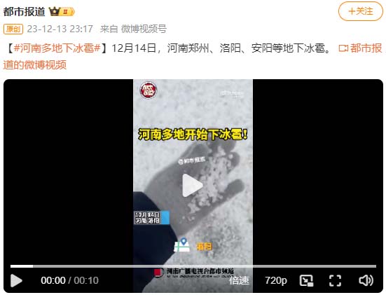 另据河南官媒报导,14日当天,不只是洛阳市,河南郑州和安阳市也降下冰雹。