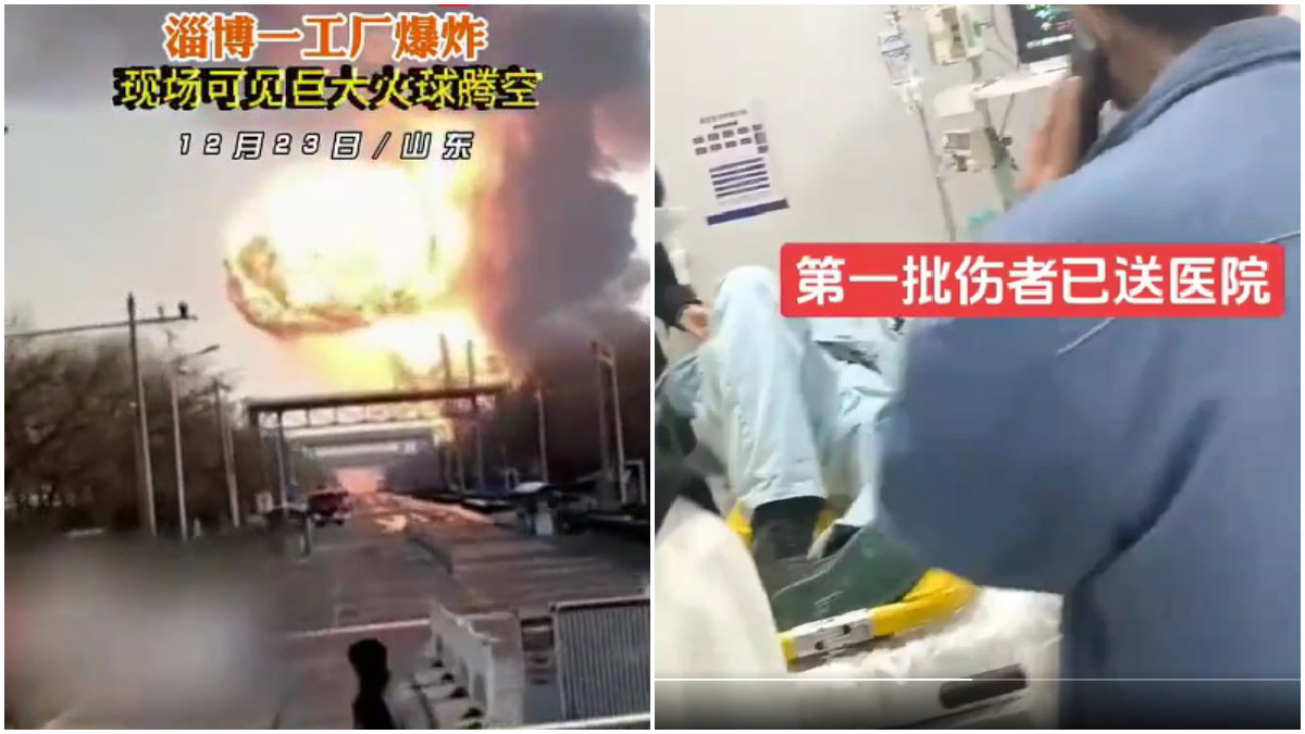 【新!唐!人:北京时间2023年12月24日讯】12月23日,山东淄博一化工厂发生大爆炸,现场巨大火球腾空而起。网传影像显示伤者众多。当地官方却声称“暂无人员伤亡”。