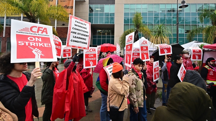 从周一(1月22日)起,加州州立大学正式进入新学期,但开学第一周,不少学生的课就被取消了,因为近三万名州立大学的教授、辅导员、图书管理员等教职员工,集体罢工五天,要求校方提高薪资待遇。