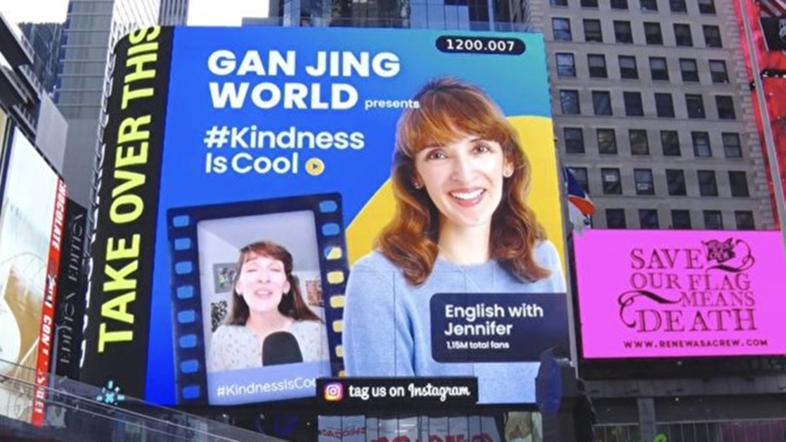 【新!唐!人:北京时间2024年01月25日讯】纽约“时代广场”高楼大厦林立,巨幅数字广告屏幕光彩夺目,充满创意和动感。1月20日,新一代媒体平台“干净*世界”(Gan Jing World)推出“善良很酷”(Kindness is Cool)视频大赛的9个网红推广视频,亮相“时代广场”巨幅电子广告墙。
