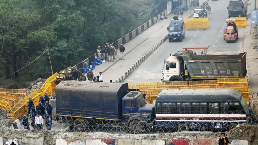 电视台画面显示,来自印度北部粮仓省分旁遮普省(Punjab)和哈雅纳省(Haryana)的农民开着拖拉机朝首都前进,在新德里外围则可见到架起有刺铁丝网和堆起水泥空心砖等障碍物来阻挡他们。警方同时也对市区发布公开聚集禁令。