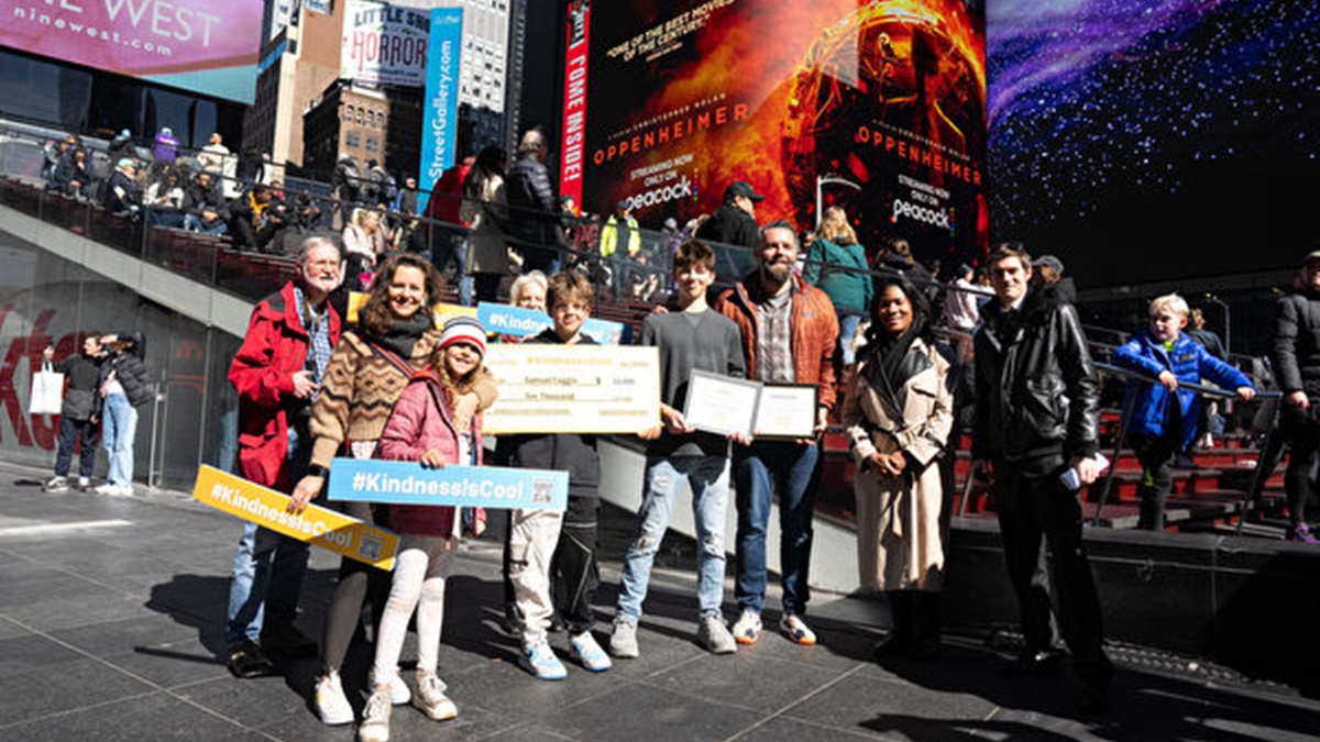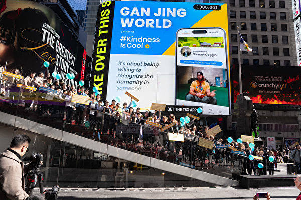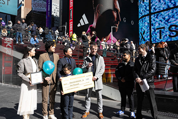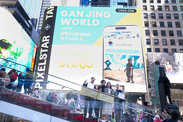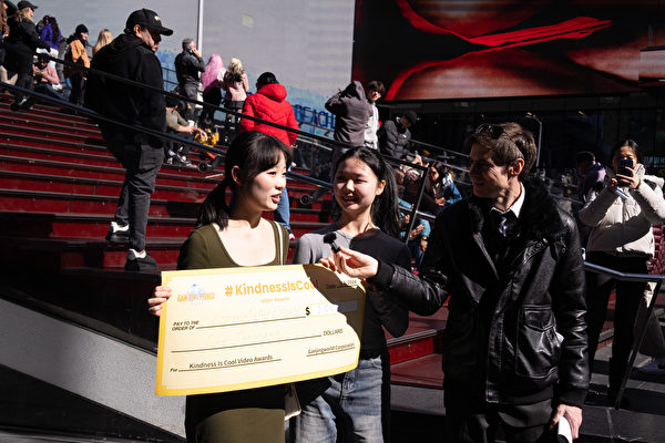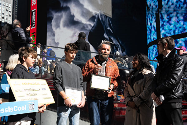 【新!唐!人:北京时间2024年03月09日讯】3月8日,纽约州新创高科技公司“干净*世界”(Gan Jing World)在纽约时代广场举办了第一届“善良很酷”(Kindness is Cool)视频大赛的颁奖活动。来自美国和加拿大的7个获奖个人和集体赶到纽约领奖。
