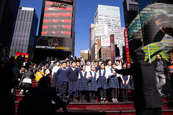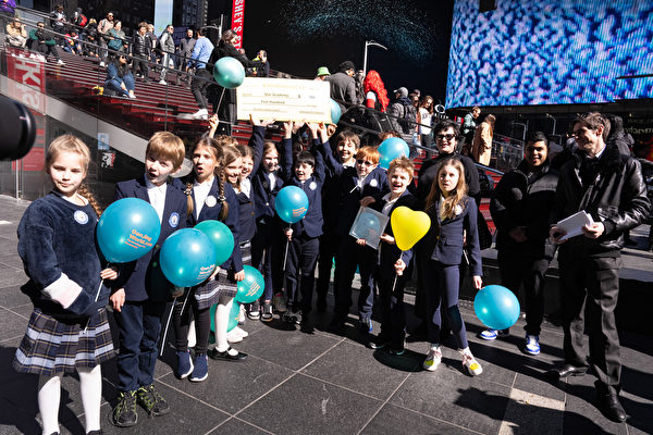波士顿“明星天才学校”(Star Academy for the Gifted and Talented)的师生们也来到时代广场领奖。他们获奖的作品是每一个学生关于“善良”的小作文。