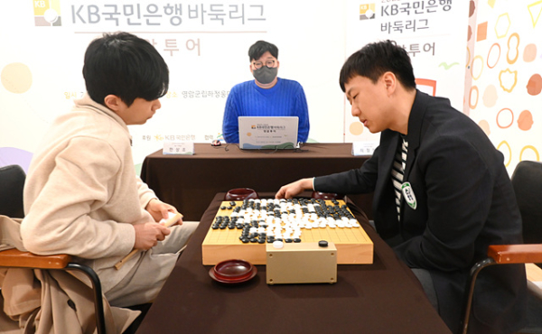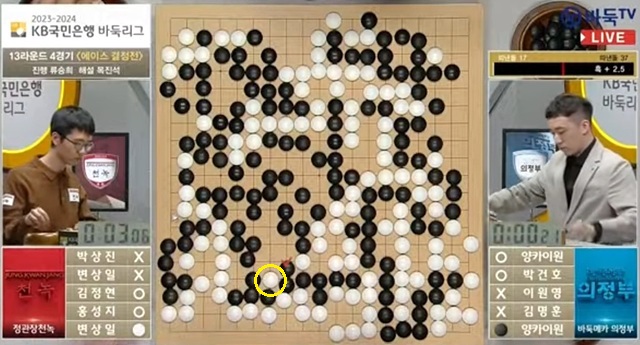 第3台,两队三将金真辉和宋知勋对决,胜率此起彼伏,最终宋知勋半目险胜,拿下关键1分,陕川郡队从而3比1击败领头羊。
