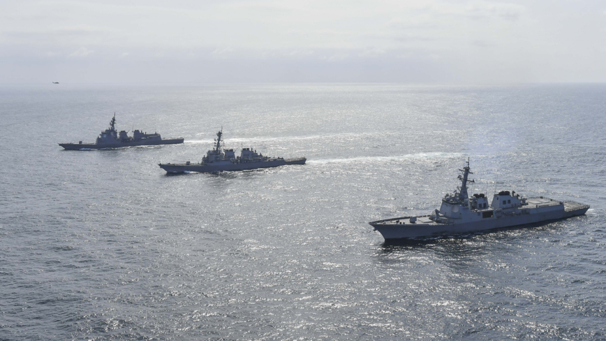 韩国海军周五(4月12日)表示,为应对朝鲜的核武威胁,美国、日本与韩国在东海国际海域举行联合军演。