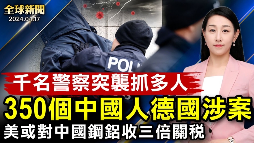 【新!唐!人:北京时间2024年04月18日讯】德国千名警察突袭 多人被捕 数百中国人涉案; 制衡中共倾销 拜登吁对中国钢铝征收三倍关税 ;中共挺俄引美国担忧 澳洲加强国防抵威胁; 伊朗威胁报复 以色列:誓言回击 保卫自己 ;日本南部发生6.4级地震 未发海啸警报 ; 中共巡视组进34家金融单位 专家解析背后原因。