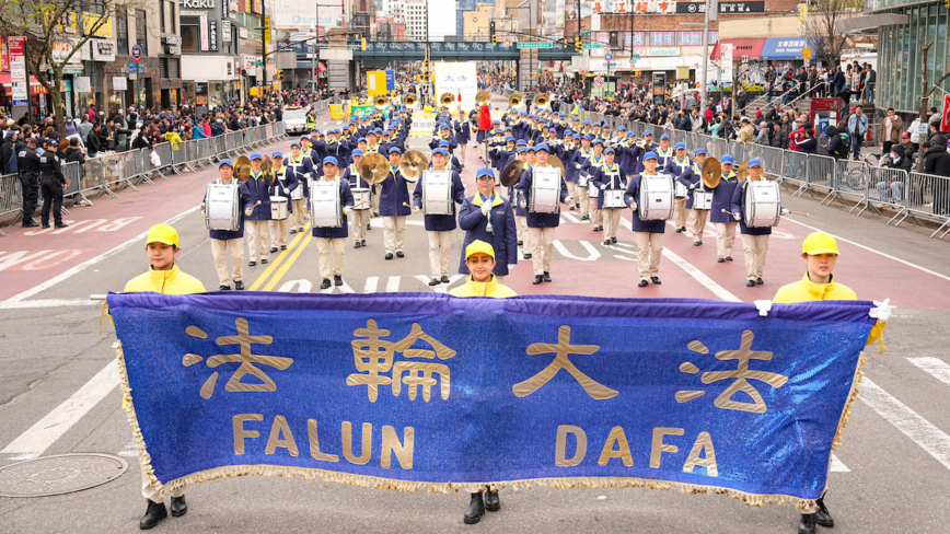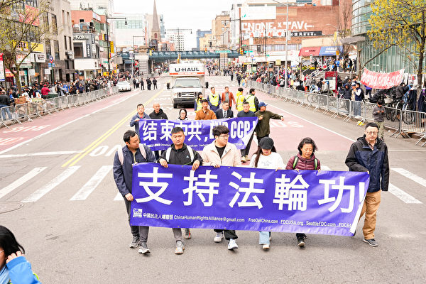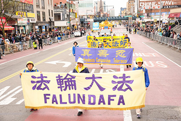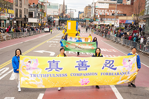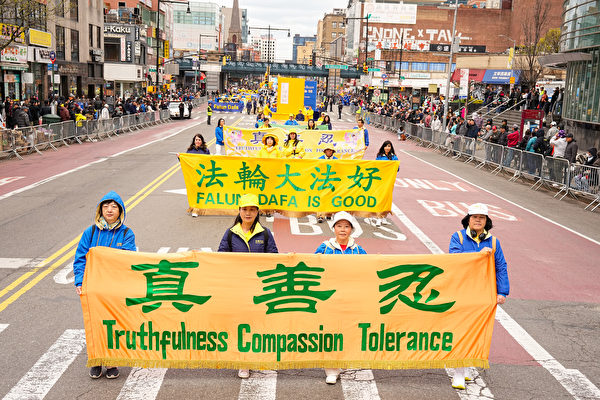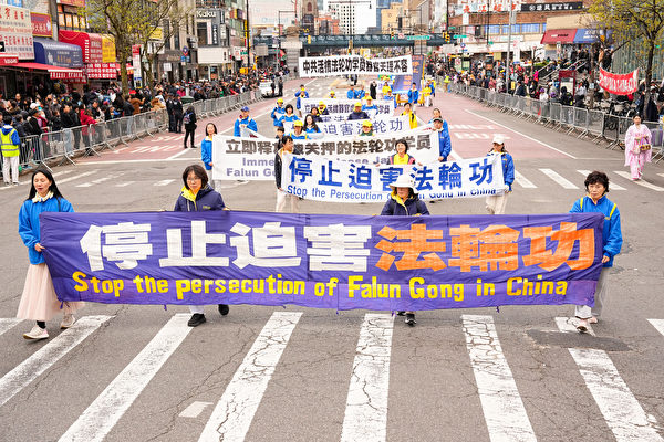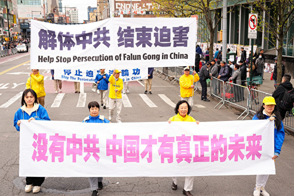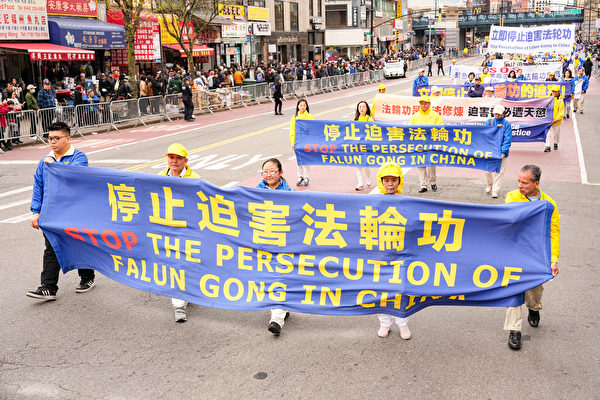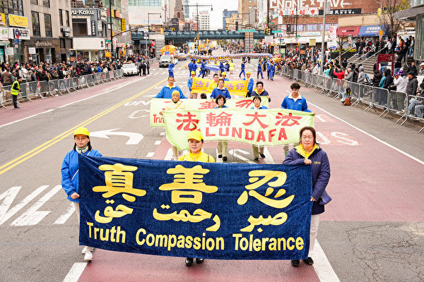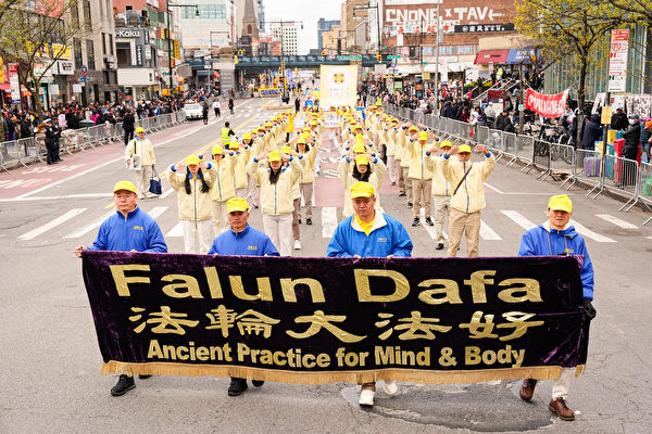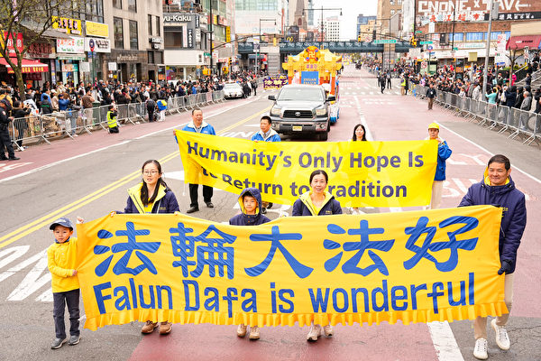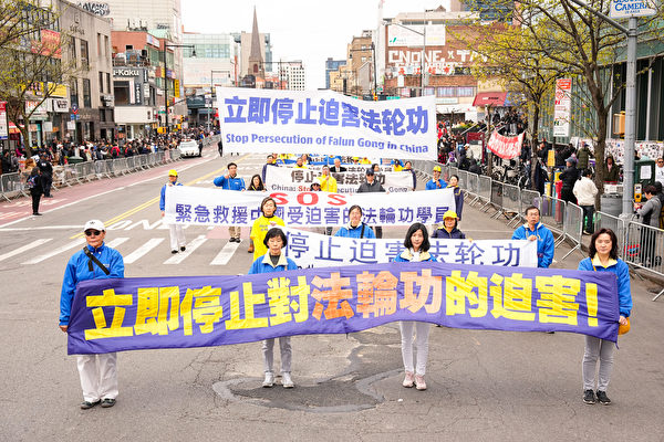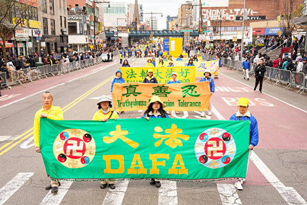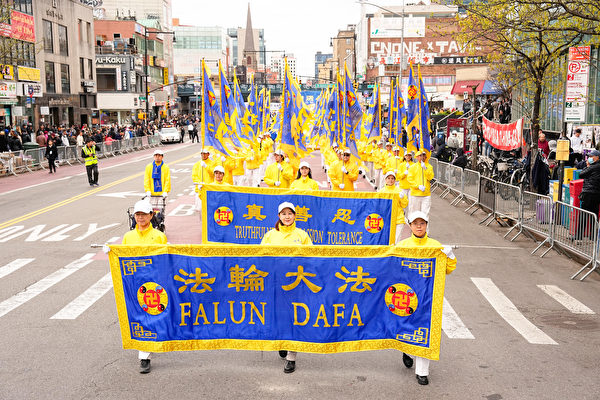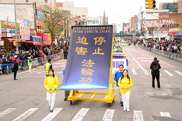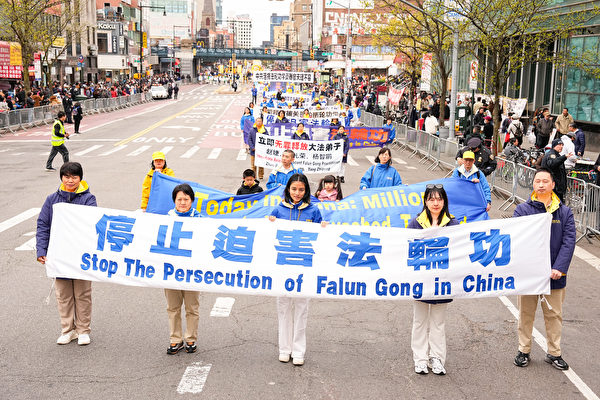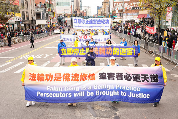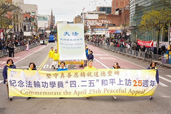 2024年04月21日,纽约纪念法轮功学员和平上访25周年游行。(戴兵/大.纪.元;)
