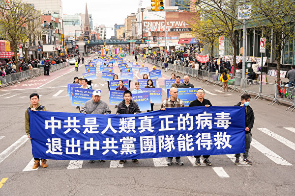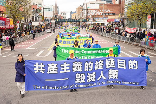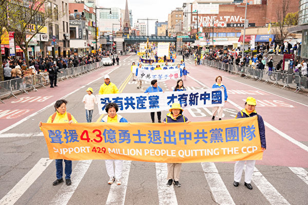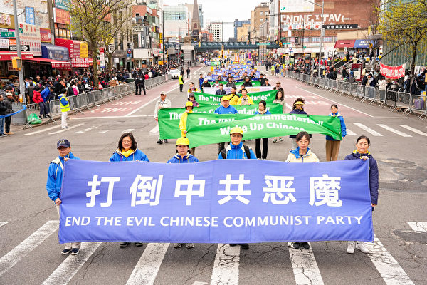 【新!唐!人:北京时间2024年04月22日讯】纽约法轮功学员于4月21日(周日)中午12点在华人社区法拉盛,举行纪念“四·二五”中南海和平上访25周年的游行,呼吁世界联合共同制止中共迫害,声援近4.3亿中国人退出中共党团队暨“打倒中共恶魔”(End CCP)征签人数超420万。