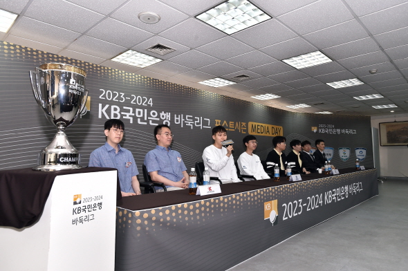 4月29日,韩国棋院在首尔举办了2023-2024赛季韩国围棋联赛季后赛的记者会。常规赛四支队伍——圆益队、高丽亚铅队(蔚山队)、韩国物价信息队以及陕川郡队晋级季后赛,他们的主教练和主将与媒体见面,并回答了记者们的提问。