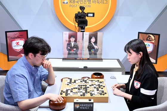 第3台,两队主将狭路相逢。申旻埈曾在常规赛中两次击败老将姜东润,本局继续维持强势,执黑159手速胜对手,为蔚山队先下一城。