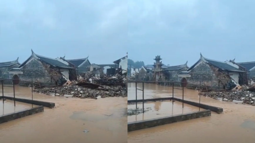 【新!唐!人:北京时间2024年06月18日讯】连日来,福建多地遭遇特大暴雨袭击,多个乡镇发生山体滑坡,有些家中淹水达两米深。日前,“客家第一祠”福建省龙岩市上杭县官田李氏大宗祠发生大面积坍塌损毁。