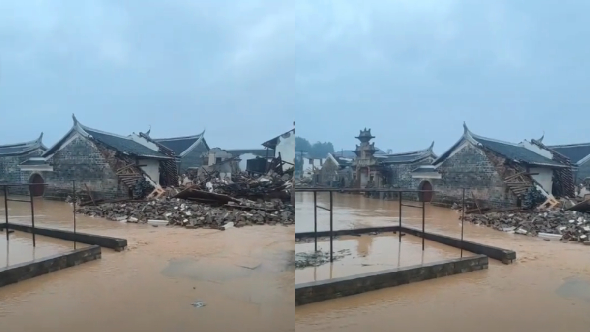 有人在自拍的视频中说,“李氏大宗祠都倒了,一片泽国。”