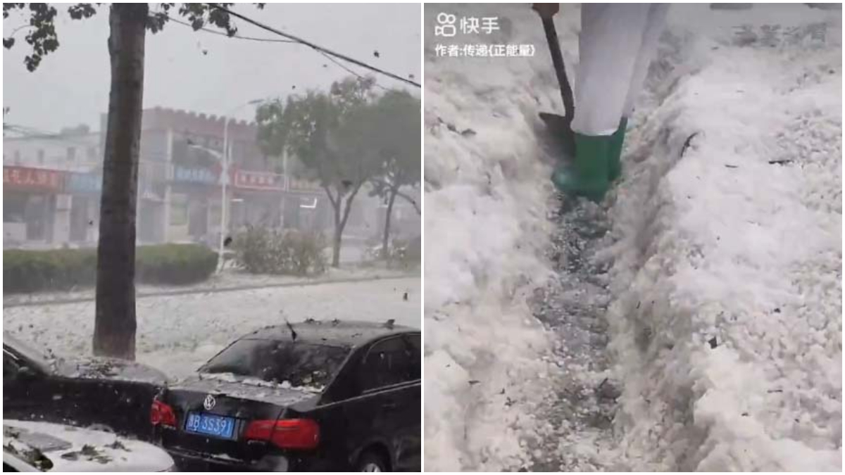 一家党媒特意发文“辟谣”称,西关村冰雹“堆积成山”并非因为冰雹下得大,而是由于地势相对低洼,冰雹被水冲到这里造成堆积。