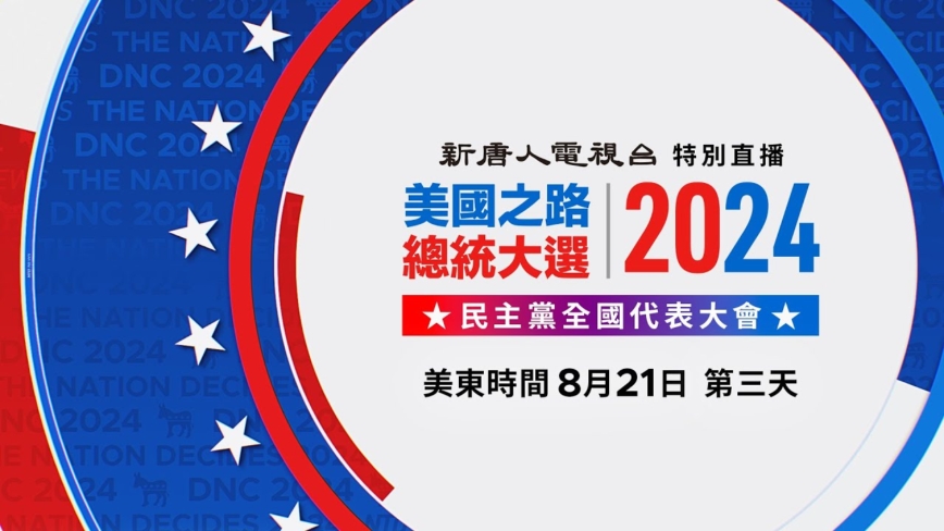 【新!唐!人:北京时间2024年08月21日讯】美国民主党全国代表大会(DNC)于8月19日至8月22日在芝加哥举行。期间每晚,大.纪.元;、新!唐!人:将进行直播,中文同声翻译,其中21日是网络直播(8:00PM—11:00PM)。据报导,当天演讲的有民主党副总统候选人、明尼苏达州州长蒂姆·沃尔兹(Tim Walz)和前总统克林顿等。