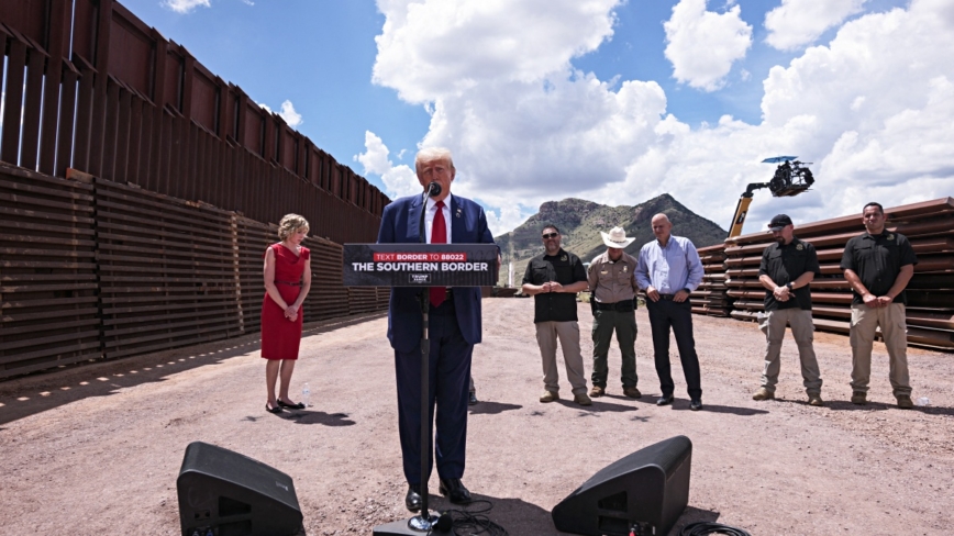 8月22日,共和党总统候选人川普转战亚利桑那州,走访了美墨边境,重申边境墙是有效的。为了“让美国再度安全”,川普表态如果重返白宫,将收拾拜登留下的烂摊子,他表示拜登政府让2000万非法移民进入美国。