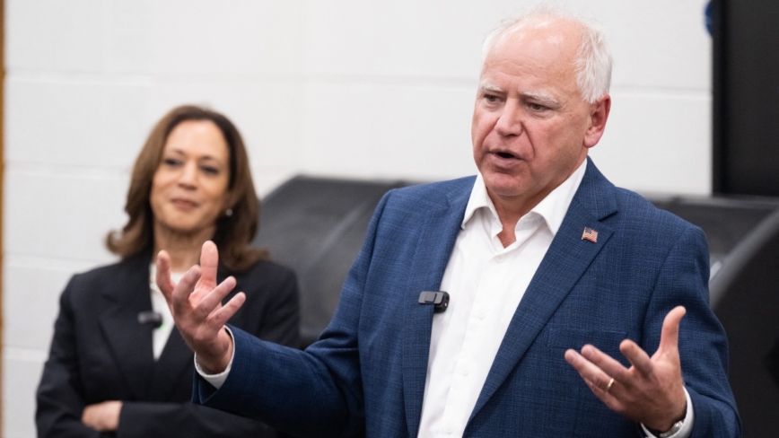 周三,民主党副总统候选人、明尼苏达州州长沃尔兹在波士顿举行的国际消防员协会大会上发表演讲,为竞选造势。