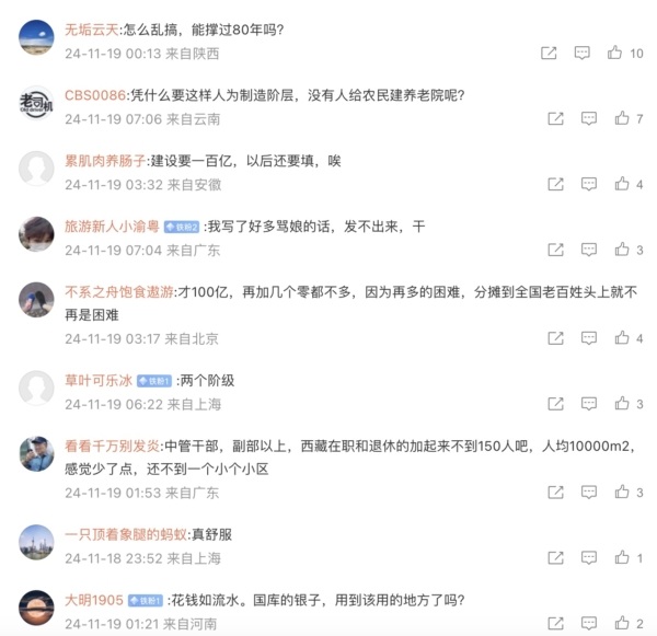 有网友质问,“怎么乱搞,能撑过80年吗?”“西藏农民老了去哪休息?”