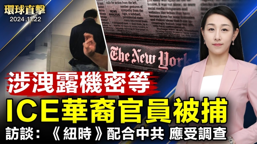 【新!唐!人:北京时间2024年11月23日讯】纽约ICE华裔官员被捕 或面临21年刑期;纽约时报配合中共攻击神韵 民间呼吁美国调查;共产哀歌的作者 亲身经历 揭露中共罪行;美国驻伦敦大使馆出现可疑包裹 被安全引爆;害怕民变 上海演练如何遮挡“反习标语”;美日韩三国空军首脑首次视频会议。