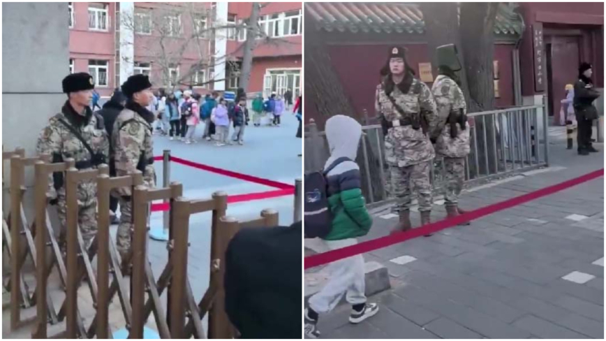 【新!唐!人:北京时间2024年12月07日讯】中国大陆随机杀人事件频发,中小学门口成为危险地带。此前传出北京中小学部署公安、特警,日前小学校门又增加了军人站岗。