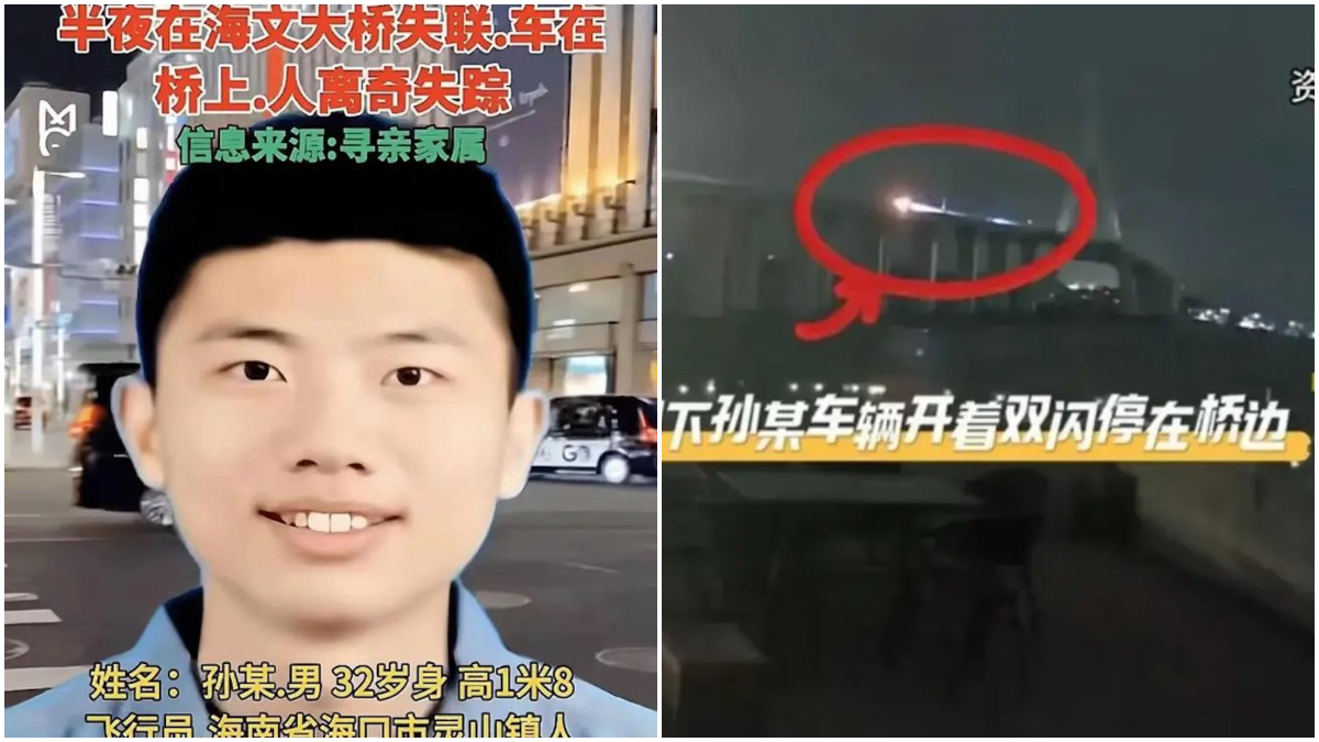 据多家大陆媒体报导,12月13日晚上11点半左右,32岁民航飞行员孙某在海口市海文大桥上失踪,据其女友介绍,孙某开车到达海文大桥,将车辆开着双闪停在路边后,下落不明。车停了三天后才被路过的人报警。