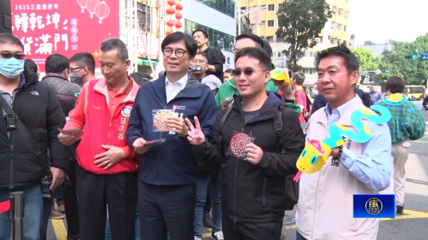 【新!唐!人:北京时间2025年01月12日讯】剩下两个礼拜就要过年了,全台年货大街陆续起跑。南台湾最大年货大街三凤中街,周六登场,高雄市长陈其迈现身发放小红包,吸引大批民众排队。主持人:“到三凤中街幸福一整年。”