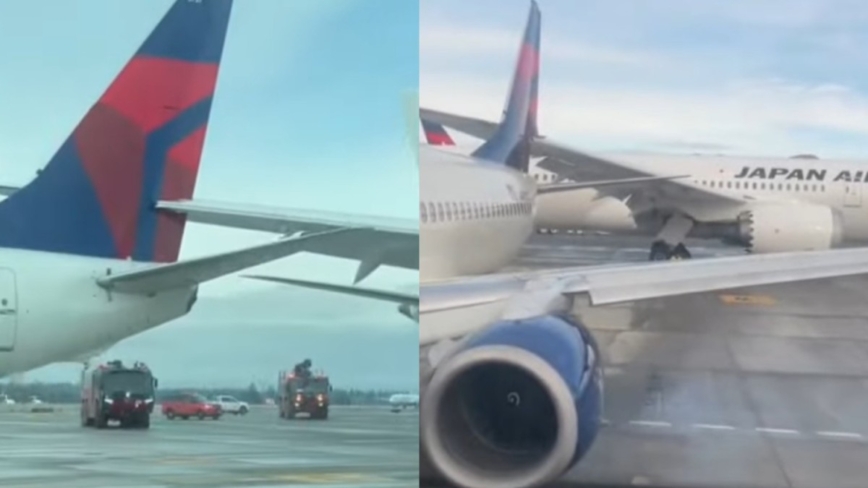 日本航空透过电子邮件声明表示,这架波音(Boeing)787型客机从东京成田国际机场抵达西雅图后,机身右侧机翼在滑行过程中与达美航空客机的机尾发生接触。