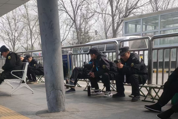 中共两会分别于3月4日和5日开始。在此之前,北京就动用大批安保人员,天安门前设置关卡,要求过路人出示证件并进行背包检查,安保关卡一层严过一层,同时警方24小时武装巡逻。