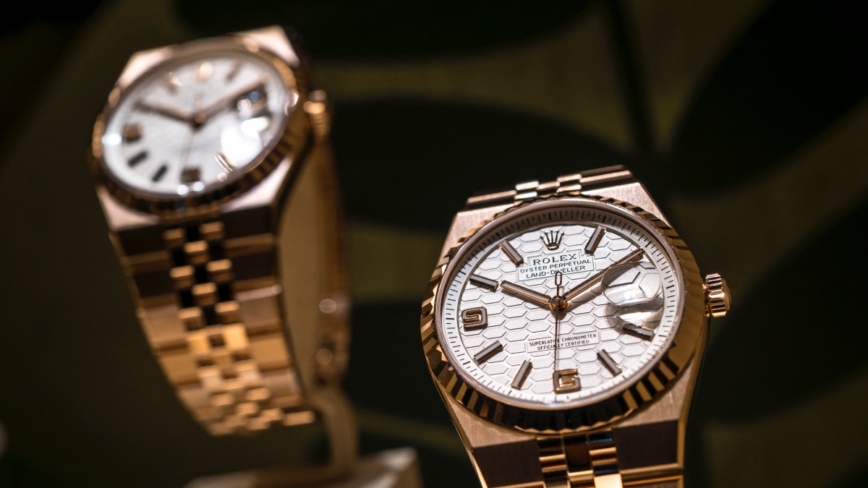 劳力士新款腕表名叫“蚝式恒动陆地居住者”,使用全新开发的机芯,拥有30多项专利,能确保时间更精准。手表表盘为蜂窝花纹,表链选用铂金镶嵌黄金,整枚手表大气不失精致,豪味十足。