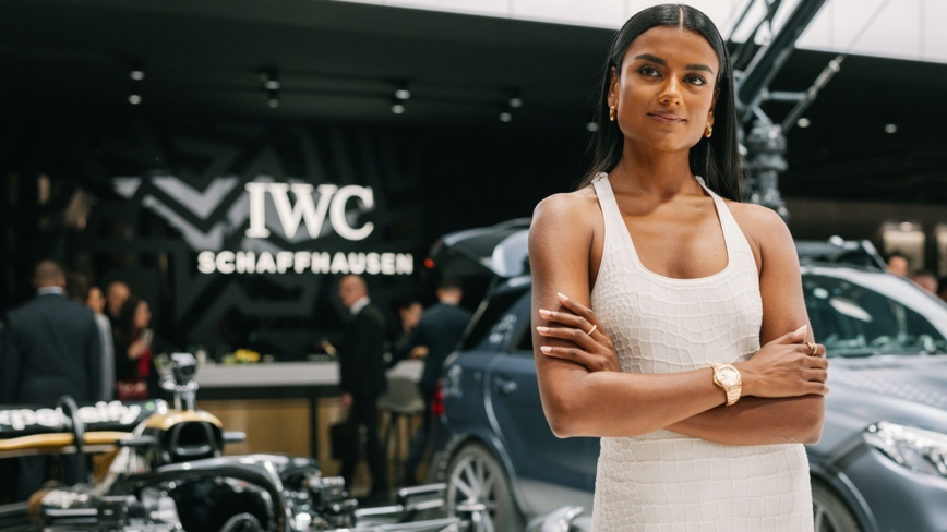 英国女星西蒙.阿什莉:“我来到日内瓦参加‘钟表与奇迹’博览会,来这里是为了宣传IWC 万国表与 F1 电影的合作。”