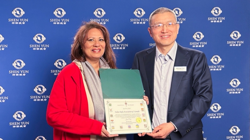 4月16日晚,加拿大国会议员、交通部副影子部长丹·穆伊斯委派主管秘书莫娜-丽莎·丁(Mona-Lysa Din)亲临安省汉米尔顿第一安大略音乐厅(First Ontario Concert Hall)为神韵艺术团褒奖。