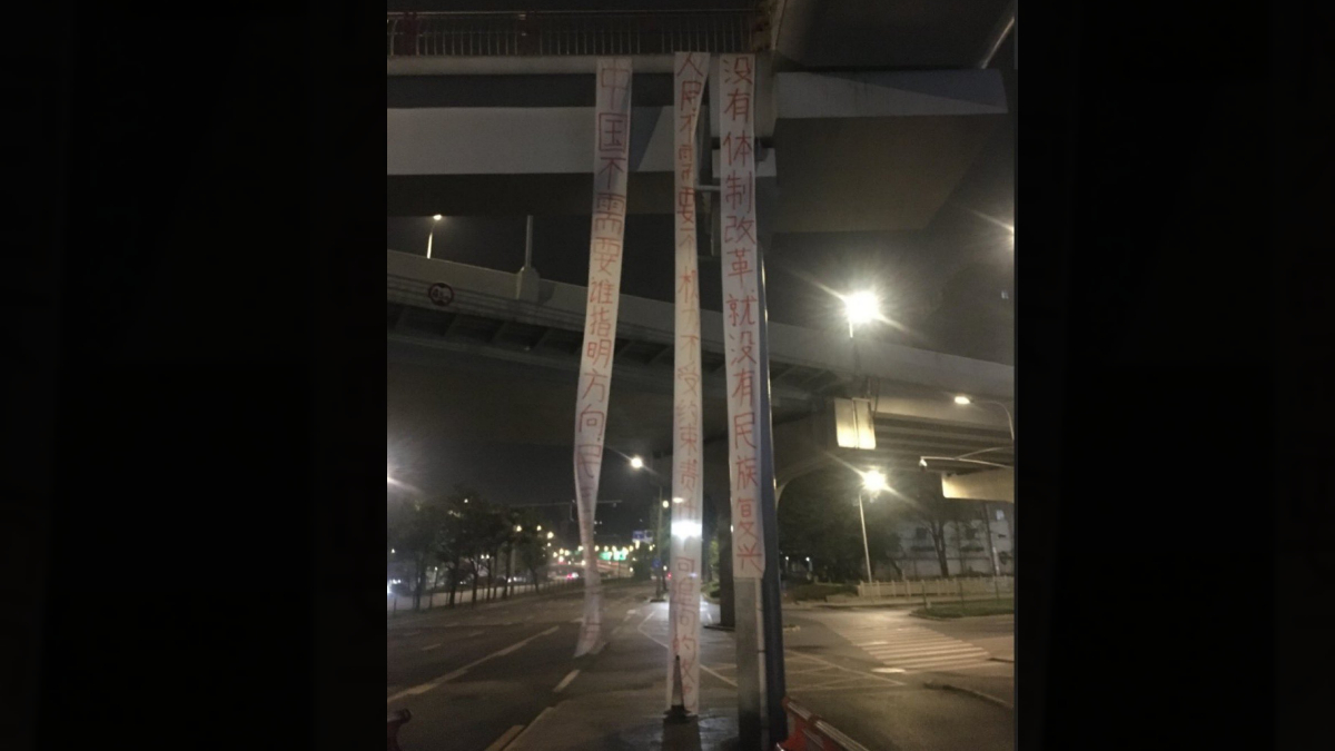 另一方面,“三条抗议标语能在闹市区高悬三小时,警方不作为,足见体制内部对习政权的不满与愤怒已浮上台面”。