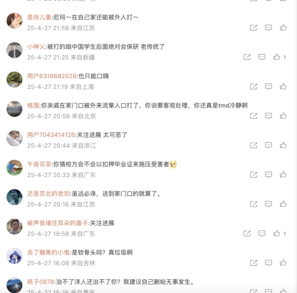 但一些网友批评,说不偏袒,就已经是偏袒了,因为中国学生自始至终没有还手,还有一些网友到该学校官网下面批评该学校,学校关闭了评论区。