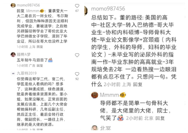 网友质疑,院士和医院骨科主任都出来为董某莹站台,说明此人背景不一般。