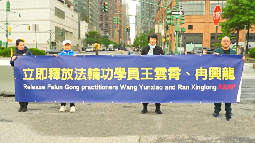 【新!唐!人:北京时间2025年05月24日讯】周五(5月23日),纽约部分法轮功学员来到中领馆前,抗议安徽警察,跨省抓捕两名教育界的法轮功学员,同时呼吁美国政府关注中共迫害法轮功的恶行,来看记者报导。