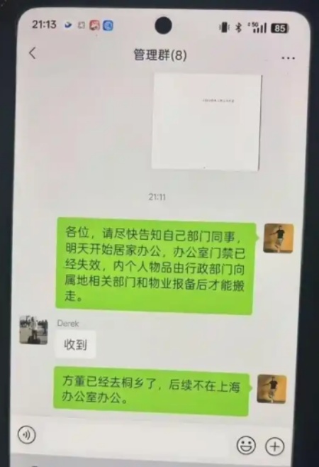 当晚,有截图显示,多名哪吒汽车员工接到通知,自6月12日起居家办公,后续安排另行通知。方运舟已经不在上海办公,去了桐乡。