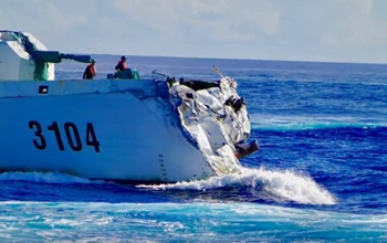 菲律宾海警发言人Jay Tarriela在声明中说,这宗撞击事件造成中方海警船的艏楼严重受损,导致无法继续航行。