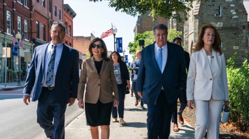【新!唐!人:北京时间2025年08月13日讯】纽约州长霍楚,周一(8月11日)到访纽约上州Middletown——中城市,实地考察了州府资助的“市中心振兴计划”项目。该计划投入数千万美元,改善城市公园、街道景观和公共空间,带动当地了商业的活动。中城市长赞扬霍楚是真正的合作伙伴。自2016年项目启动以来,该计划已向纽约州的91个社区拨款9亿美元,促进地方繁荣。