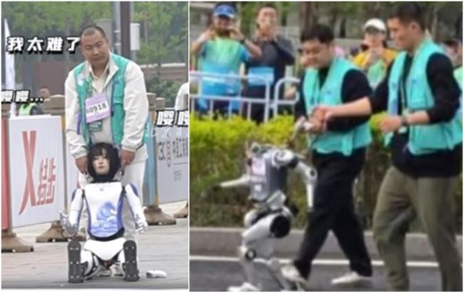 今年4月中旬,北京亦庄曾举办中国首场机器人半程马拉松赛事,共有20台机器人赛队参赛,“人机共跑”的话题提前被官媒热炒。然而在比赛现场,参赛的机器人“选手”却状况百出:有机器人步履蹒跚如重病的老人;有美女机器人刚起跑几步就瘫坐在地;有一个体型矮小的机器人跑到中途头滚落在一边,身体还在继续前行,看上去十分惊悚;还有机器人跑到一半开始冒青烟,把现场的观众吓得不轻。