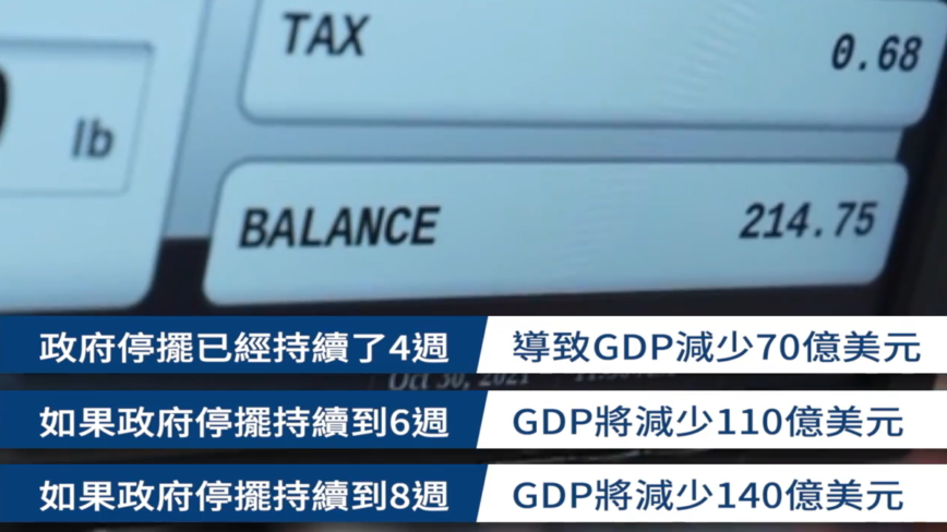 美国国会预算办公室周三报告,政府停摆已经持续了4周,导致GDP减少了70亿美元;如果持续到6周,GDP将减少110亿美元;到8周,GDP将减少140亿美元。即使政府重新开门后,经济超正常水平增长,也依然会有70亿到140亿美元的损失,无法弥补。
