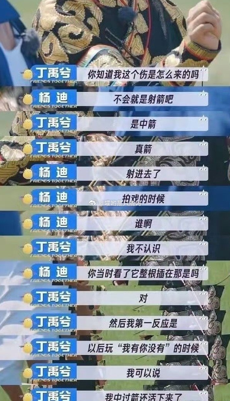 丁禹兮在拍摄期间,还经历中暑、手掌被道具箭射穿缝6针、零下环境长时间拍摄,导致肢体麻痹等意外。
