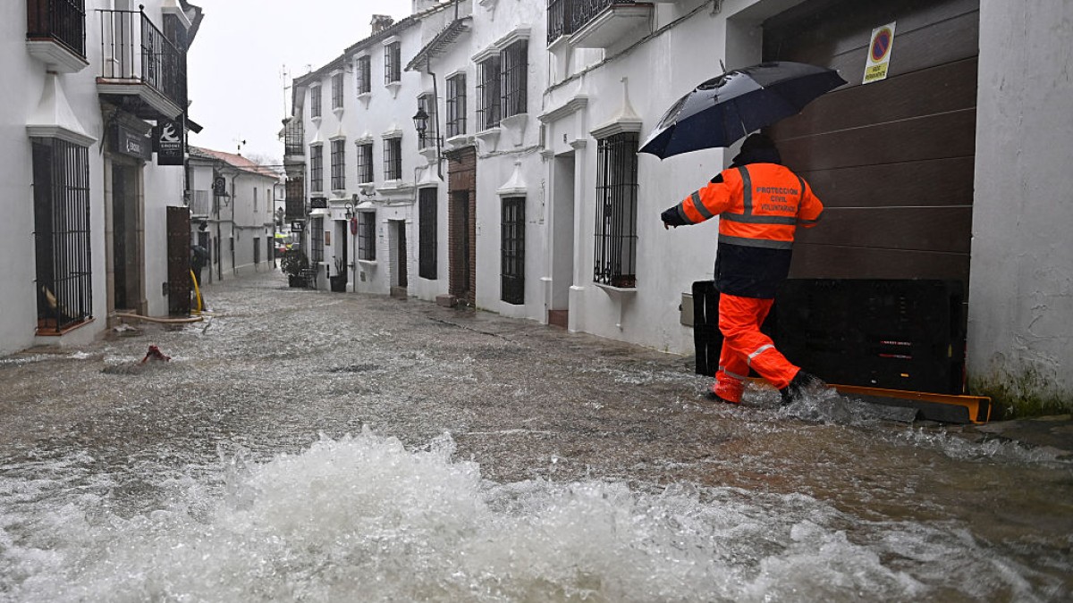 【新!唐!人:北京时间2026年02月07日讯】伊比利半岛今冬第7个风暴李奥纳多(Leonardo)2月5日重创西班牙,超过40公分的降雨,导致南部安达鲁西亚地区(Andalucía)灾情惨重,交通瘫痪,学校停课。强降雨引发洪灾,白色小镇格拉萨莱马(Grazalema)面临山崩危机,全镇紧急疏散。