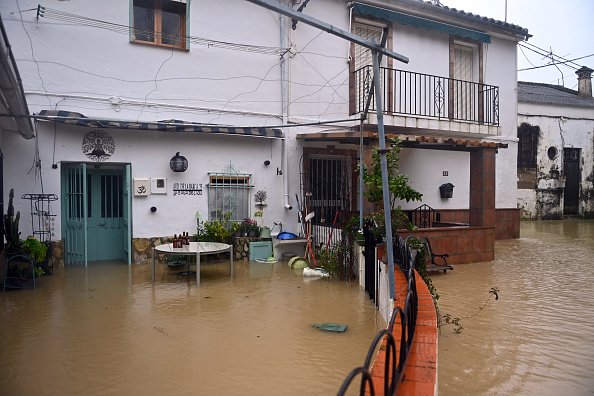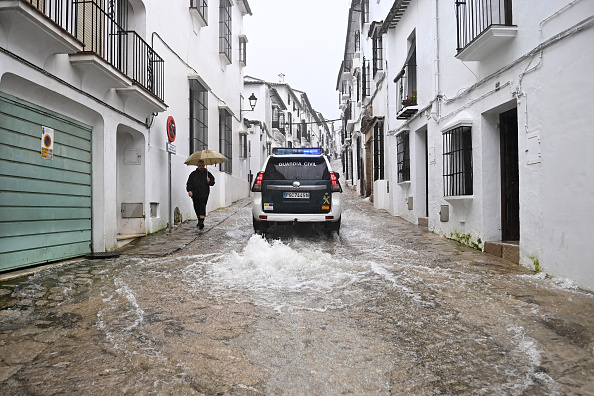 2026年2月5日,西班牙南部赫雷斯省拉斯帕切卡斯镇在风暴的袭击下被洪水淹没。(CRISTINA QUICLER / AFP via Getty Images)