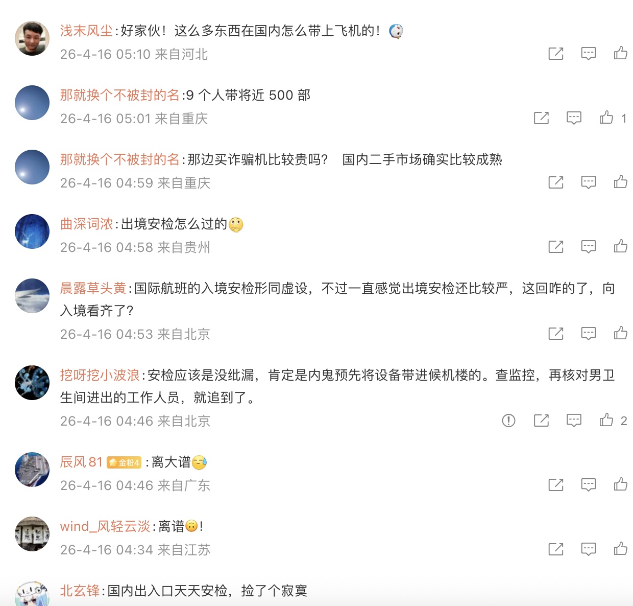 【新!唐!人:北京时间2026年04月16日讯】4月16日,9名中国人在斯里兰卡机场被捕。他们被发现身上藏有几百部电子设备,被怀疑用于网络诈骗活动。中国网友质疑,“在中国怎么上的飞机?”