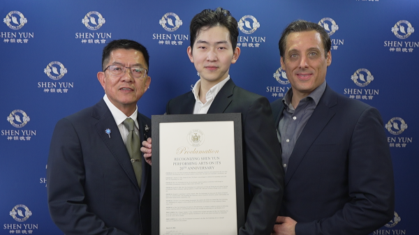 【新!唐!人:北京时间2026年04月17日讯】2026年4月15日晚,神韵新世界艺术团在纽约州首府奥本尼普罗克特斯剧院上演第二场演出。纽约州第17选区州参议员陈学理(Stephen T. Chan)今年首度观赏神韵,并于当日向神韵颁发褒奖。身为华裔的他表示,对神韵致力复兴中华传统文化深表赞赏,也肯定神韵多年来凝聚社区、传承文化的努力。纽约州第17选区州参议员陈学理:“我要在此向神韵多年来凝聚社群、传承文化所付出的心血,致以诚挚的敬意。”