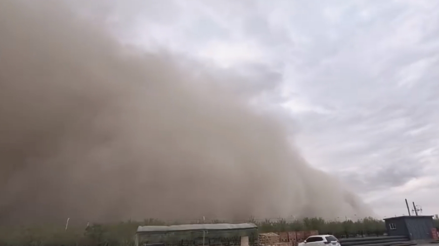 当地市民上传至社交媒体的视频显示,沙尘形成数百米高的沙墙快速蔓延,吞噬一切,所到之处,天空瞬间变暗如黑夜。