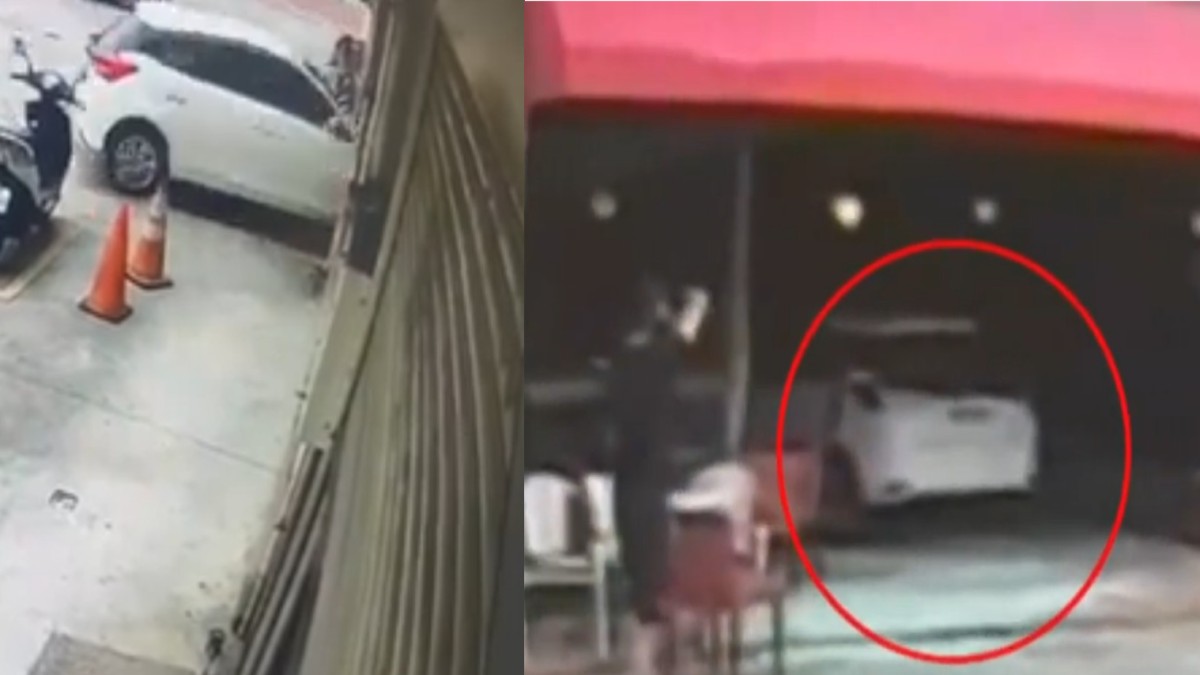 据了解,事发当时店内有约6名顾客。事发当下的监视器画面曝光,这名妇女驾车转弯进入85度C停车场后,原先车辆右转时速度已减慢,下秒却突然加速撞进店内,店门口一名女子正坐在座位上,急忙跳开,随后便传出撞击巨响,相当骇人。