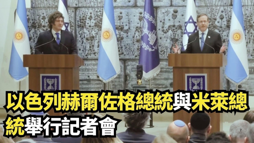 【新!唐!人:北京时间2026年04月19日讯】美东4月20日,耶路撒冷,以色列总统艾萨克·赫尔佐格(Isaac Herzog )与阿根廷总统哈维尔·米莱(Javier Millei)举行联合记者会。新!唐!人:、大.纪.元;进行网络重播,即时翻译字幕。