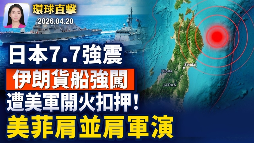【新!唐!人:北京时间2026年04月20日讯】日本7.7强震引发海啸 一周内恐再发生强震;来自中国!伊朗船强闯封锁线 美军开火扣押;美菲肩并肩军演 美军:印太部署不受中东影响;法轮功425和平上访 台湾各界制止中共跨境镇压;捷克资深政治家盛赞神韵:震撼人心 开启民智。